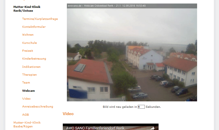 Blick über die Dächer vom AWOSANO Feriendorf Rerik Richtung Ostsee - Wetterwebcam